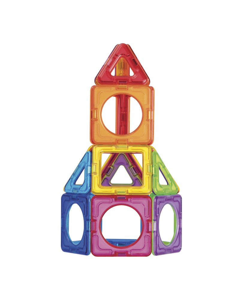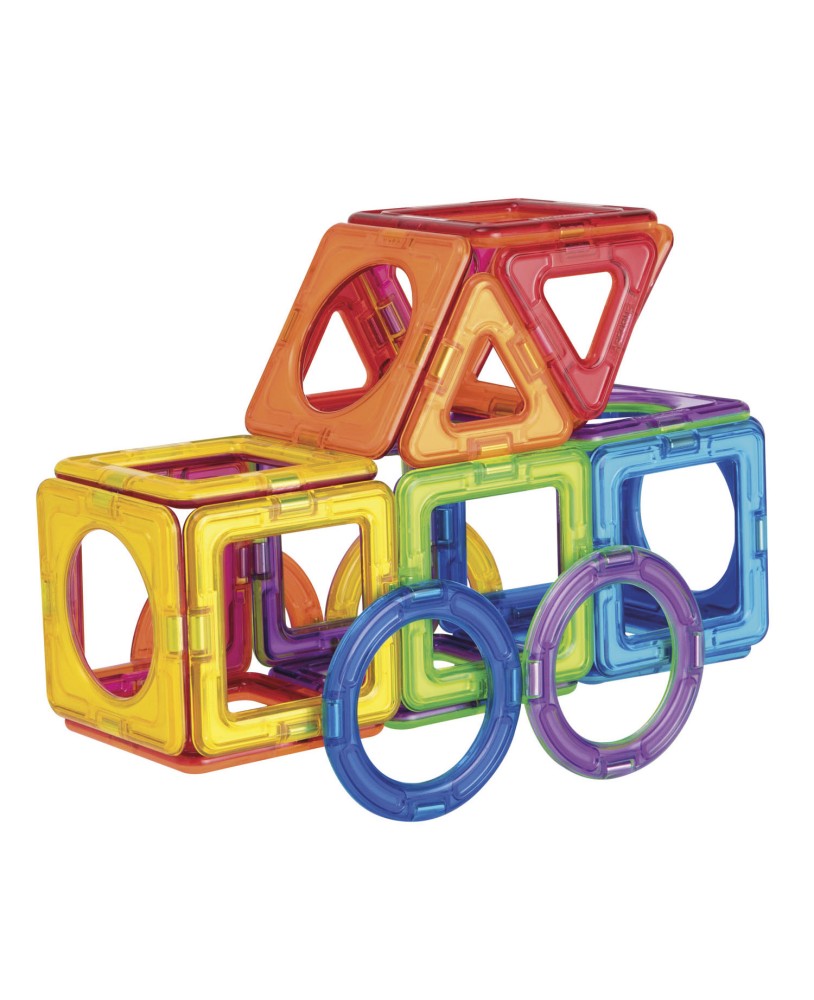 Wist je Magformers eigenlijk waanzinnige fun is, gewoon in een doos verpakt? En dat je van het spelen met Magformers slimmer wordt? Jawel, want deze magnetische bouwstenen zijn STEM-speelgoed. Kortom, de ideale combinatie van bouwplezier en hersentraining. En meteen ook het allerbeste excuus om urenlang te mogen spelen. Deze Magformers Basic Plus 30 Set bevat naast de klassieke Magformers bouwstenen die je ook in de Basic Sets terugvindt nog een extra geometrische vorm. Vanaf nu werk je dus ook met cirkels en halve cirkels. zo kan je je design skills nog verder ontwikkelen en verzamel je moeiteloos nog meer bewonderende blikken. Want geloof ons, als je eenmaal de camera, het schip of de blokhut uit het meegeleverde ideeënboekje hebt gebouwd, heb je het écht wel gemaakt als toekomstig designer of ingenieur. En omdat Magformers zo fun zijn, maak je vermoedelijk binnen de kortste keren ook nog de 9 andere creaties uit het boekje.